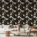 Kultainen kukka-tapetti | Valkoiset lehtikuvioinnit mustalla pohjalla