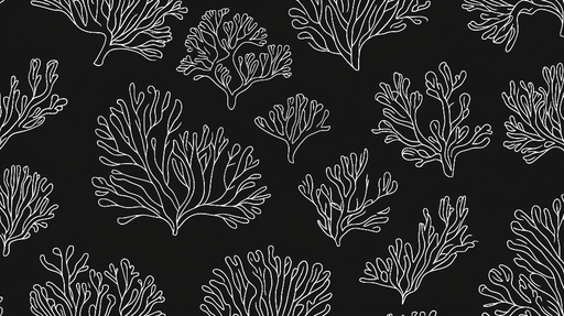 WonderMuralTämä tapettimainen taidekuva esittelee rohkean muotoilun tyyliteltyä korallia, joka on piirretty valkoisella syvän mustalle taustalle. Kuvion elega...