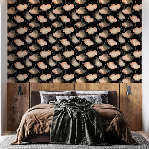 WonderMuralTämä tapetti sisältää kauniin kuvion herkästi piirretyistä ginkgo-lehdistä, jotka on valaistu syvällä mustalla taustalla. Lehdistä löytyvät kermanv...