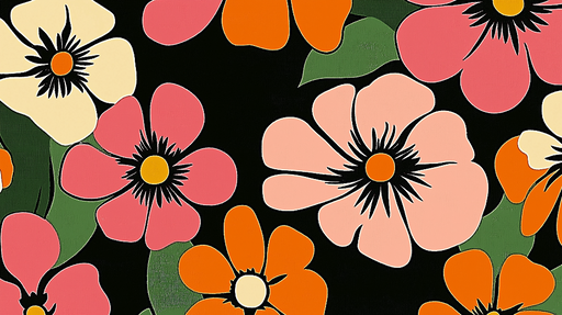 WonderMuralTämä seinätapetti on rohkea kukkakuvio, jossa on monivärisiä kukkia mustalla taustalla, mikä luo silmiinpistävän kontrastin. Vaaleanpunaisen, orans...