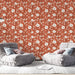 Punainen kukkakuviotapetti | Valkoinen kukkakuvio lämpimällä terrakotan värisellä taustalla