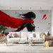 Tapetti warrior | Salaperäinen siluetti kirkkaanpunaisella viitalla