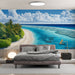 Valkoisen hiekan ja syvän turkoosin veden välinen kontrasti antaa tunteen paosta ja vapaudesta, ihanteellinen rannikko-, boheemi- tai eksoottiseen tyyliin sisustettuihin tiloihin. Olipa kyseessä makuuhuone, olohuone tai toimisto, tämä tapetti tuo ripauksen ylellisyyttä ja rauhaa.