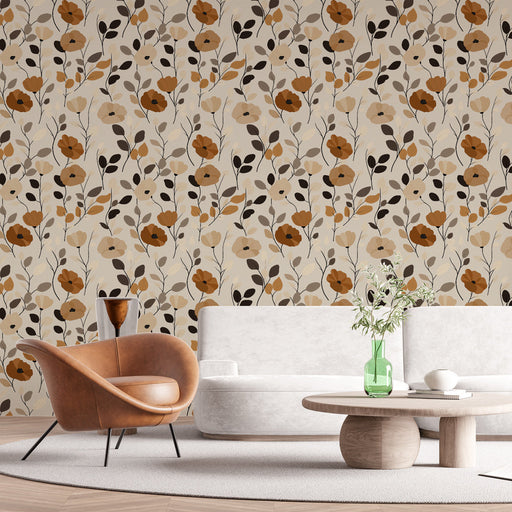 WonderMuralTämä viehättävä kukkainen seinämaalitapetti esittelee eloisaa kuviota lämpimän sävyisistä kukista ja herkistä lehdistä pehmeällä beige taustalla. K...