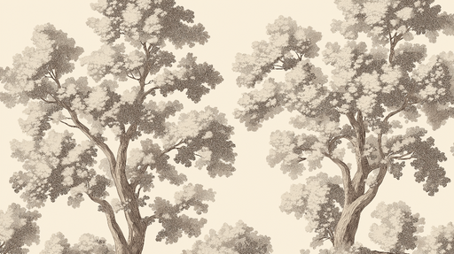WonderMuralLöydä shabby chic -taustakuva, jossa on kaunis kuvio tyylitellyistä puista beigeissä ja ruskeissa sävyissä. Lehtien ja runkojen herkät yksityiskohd...