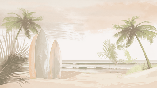 WonderMuralTapettimme herättää rauhoittavan tropiikin tunnelman, jossa on elegantteja surffilautoja hiekkarannalla, ympäröitynä mahtavilla palmupuilla. Lempeä...