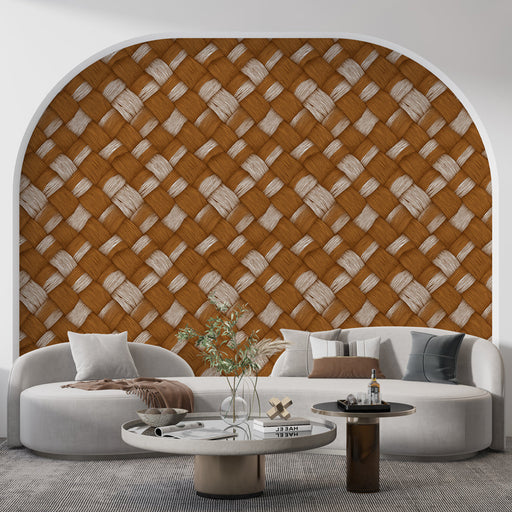 WonderMuralYksinomainen Tapetti näyttää monimutkaisen punoksen kuvion, joka herättää aitouden ja käsityöläisyyden. Lämpimät, maanläheiset värit, sävyt ruskeas...