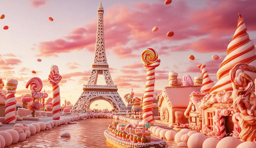 Art'loloMuuta tilaasi taianomaisella tapettimuurauksellamme, joka kuvaa Pariisin näkymää, joka on luotu herkullisista makeisista. Majesteettisen Eiffel-tor...