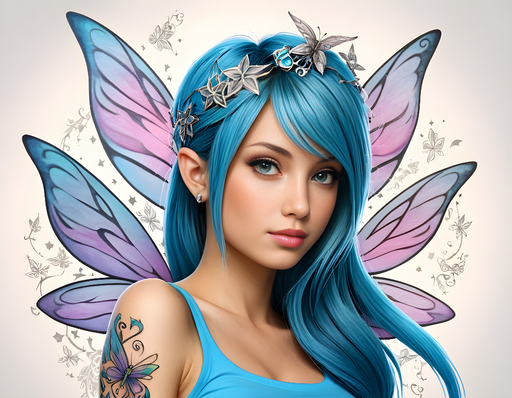 Art'loloTämä lumoava sininen keijumainen tapetti esittelee elegantin kuvituksen keijusta, jolla on kirkkaan siniset hiukset, koristeltu pinkillä kukalla ja...