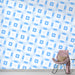 Tämä geometrinen tapetti sisältää sinisiä ja valkoisia neliöitä, täydellinen moderniin kosketukseen missä tahansa huoneessa. Toistuva ja harmoninen suunnittelu luo rauhoittavan ja nykyaikaisen ilmapiirin.