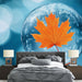 Löydä ainutlaatuinen tapettimme, jossa on oranssi vaahteranlehti, joka kelluu herkästi vesikuplassa, luoden rauhan ja luonnon vaikutelman. Sininen tausta, jossa on kirkkaita heijastuksia, lisää syvyyttä ja harmoniaa sisustukseesi.