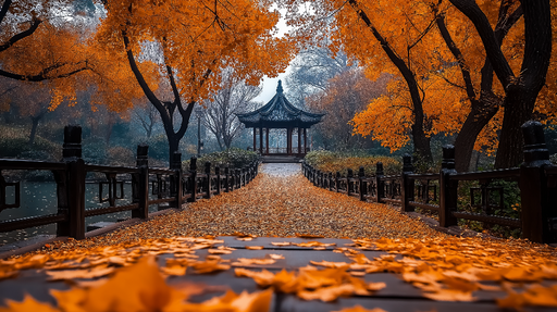 WonderMuralLöydä meidän tapettimme, joka kuvaa japanilaista puutarhaa syksyllä, jossa kirkkaanpunaiset vaahteranlehdet ympäröivät eleganttia perinteistä tempp...