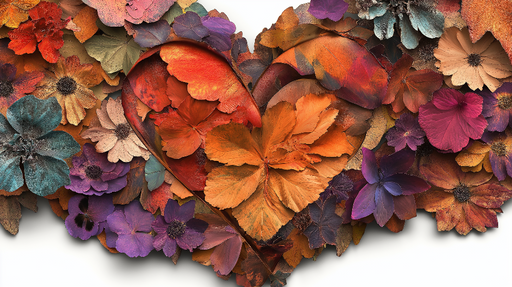 WonderMuralTapetti Sydän kuivatuista kukista Tämä tapetti paljastaa sydämen, joka on muodostettu lehdistä ja kuivatuista kukista, eloisassa syksyisissä väreis...