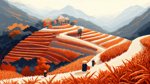 WonderMuralLöydä tapettimme, joissa on upea riisiterassilandscape, kylpevä oranssin ja punaisen sävyissä, jotka muistuttavat syksystä. Riisipeltojen lempeät a...