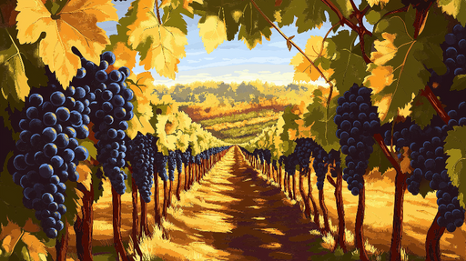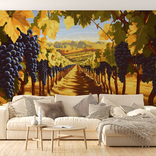 WonderMuralUpota itsesi lämpimään tunnelmaan viinitarhassa syksyllä tämän lumoavan tapetin avulla, jossa rehevät rykelmät mustia rypäleitä roikkuvat kultaiste...