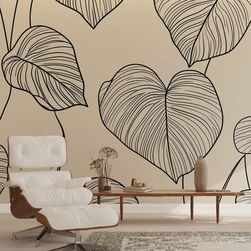 WonderMuralLöydä Tapettiimme elegantit lehtikuvioinnit, joissa on minimalistinen mustavalkoinen muotoilu. Lehtien virtaavat ja herkät viivat kevyellä taustall...