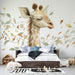 Tapetti kirahvi | Pehmeitä kuvituksia kirahvista, jota ympäröivät värikkäät lehdet