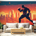 Tämä tapetti esittelee eloisan kuvituksen nyrkkeilijästä toiminnassa, taustalla kaupunkimaisema auringonlaskun aikaan. Lämpimät värit ja korostetut varjot luovat energisen ja motivoivan ilmapiirin, joka on ihanteellinen urheilun ystäville.