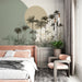 Tämä tapetti korostaa suloisia palmupuun siluetteja kevyesti tekstuuroidulla taustalla. Vihreän ja beigen pehmeät sävyt herättävät rauhallisen ja trooppisen ilmapiirin, täydellisen tuomaan pakoa sisätiloihin. Värien hienovarainen gradientti ja orgaaniset muodot luovat rauhoittavan vaikutuksen, joka kutsuu rentoutumaan.