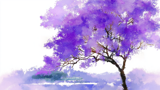 Näytä kaikki tiedotTapetti purple tree | Majesteettinen kukkiva puu violeteissa sävyissä rauhoittavassa maisemassa