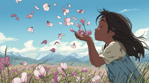 WonderMuralTämä tapetti kuvaa runollista kohtausta, jossa lapsi puhaltaa kukkien terälehtiä laajalla kentällä. Herkän vaaleanpunaisen ja raikkaan vihreän sävy...