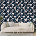 Tapetti kukkakuviolla keskiyön sinisellä taustalla | Hento kuvio valkoisista ja vaaleanpunaisista kukista