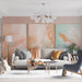 Tämä kaunis tapetti on kokoelma kolmesta paneelista, joissa on herkkiä lehtikuvioita pastellisävyissä. Vaaleanpunaisen, persikan ja vaaleanvihreän sävyt tuovat raikkautta ja keveyttä sisustukseesi samalla luoden rauhoittavan tunnelman.