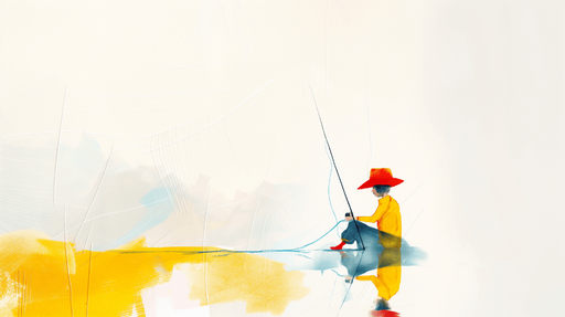 WonderMuralTämä Tapetti tavoittaa yksinäisen kalastajan olennaisen olemuksen keltaisessa puvussa ja punaisessa hatussa, jotka erottuvat elegantisti abstraktis...