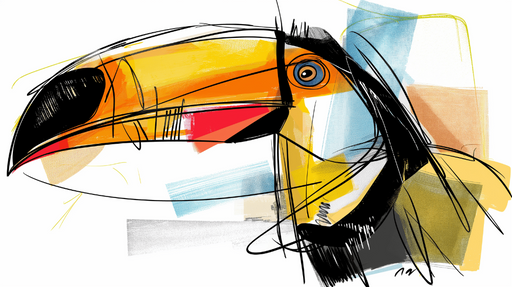 WonderMuralTämä tapetti esittelee tyylitellyn tukaanin, piirrettynä rohkeilla viivoilla ja elävillä väreillä kuten keltainen, oranssi ja musta, abstraktilla t...