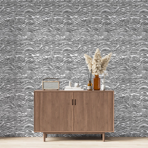 WonderMuralTämä tapetti on tyylikäs ja nykyaikainen suunnittelu aaltokuvioilla, jotka muodostuvat mustista viivoista valkoisella taustalla. Aaltoilu luo dynaa...