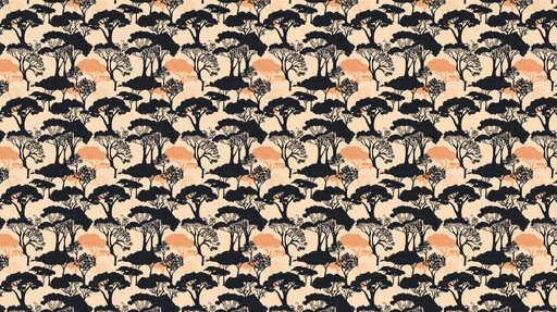 WonderMuralUpea Tapetti herättää viehättävän motiivin tylslkäästä puista mustalla pehmeällä taustalla, jossa on lämpimiä värejä kuten korallia. Siluetit erott...