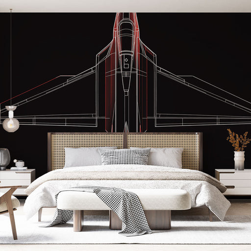 WonderMuralTämä tapetti tarjoaa tyylitellyn esityksen taistelulentokoneesta, jossa on virtaviivaiset valkoiset viivat mustalla taustalla. Nykyaikainen suunnit...