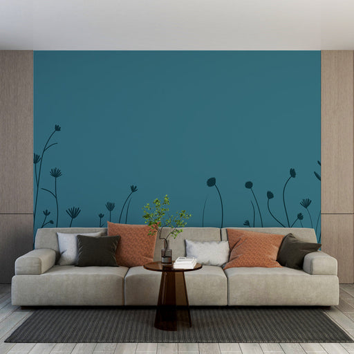 WonderMuralTämä sinivihreä tapetti tarjoaa elegantin muotoilun kukkien ja heinien silueteilla, luoden rauhoittavan ja modernin ilmapiirin. Minimalistiset kuvi...