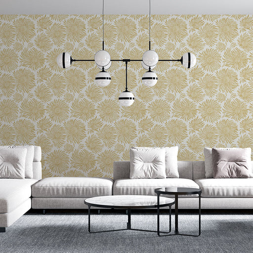WonderMuralTämä tapetti sisältää kauniin kuvion kultaisista kukista, jotka on hienostuneesti stilisoitu ja koristeltu mustilla keskuksilla, luoden näyttävän k...