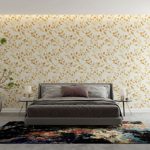 WonderMuralTapettimme on kaunis kuvio kultaisista lehdistä, jotka nousevat elegantisti vaalealle taustalle luoden lämpimän ja kutsuvan ilmapiirin. Kullan pehm...