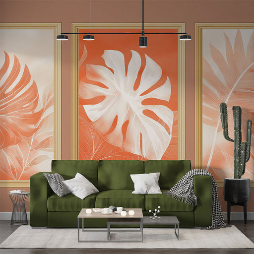 WonderMuralTämä tapetti luo trooppisen tunnelman valkoisten lehtikuvioiden avulla kirkkaalla korallin värisellä taustalla. Lehtien erilaiset tekstuurit ja muo...