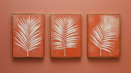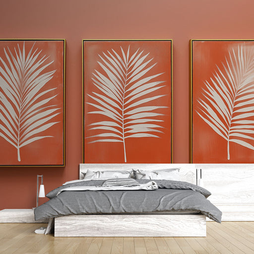 WonderMuralTapettimme sisältää joukon tyyliteltyjä palmupuita, jotka on maalattu herkästi valkoisella ja erottuvat lämpimältä korallitaustalta. Tämä moderni j...
