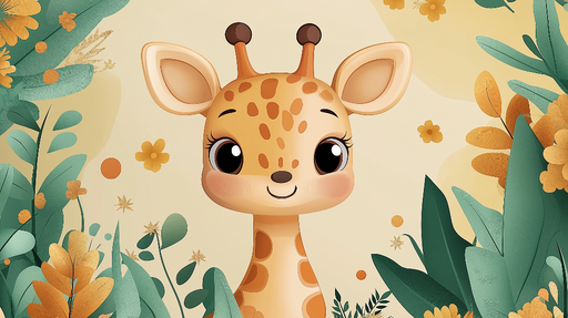 Näytä kaikki tiedotTapetti kirahvi | Söpö kirahvi ympäröi kukkia ja lehtiä