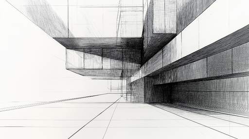 WonderMuralTämä tapetti sisältää kiehtovan arkkitehtonisen suunnittelun, joka koostuu terävistä viivoista ja geometrisista muodoista mustavalkoisena. Kuvitus ...