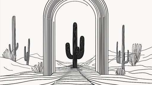WonderMuralTämä lumoava tapetti sisältää minimalistisen kaktuskuviointia aavikkomaisemassa, jota korostaa tyylikäs kaari, joka luo syvyyden vaikutelman. Musta...