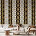 Yhdistä tämä tapetti tummiin huonekaluihin tai metallisiin sävyihin räväkän kontrastin luomiseksi. Kultaiset koristeet tehostavat suunnittelua entisestään, kun taas pehmeät kankaat ja luonnonmateriaalit tuovat lämmintä tasapainoa.