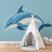 Tapetti delfiini | Iloinen kuvaus delfiinistä sinisissä sävyissä