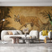 Tapettimme esittelee majestettisen ilveksen loikoilemassa kivien keskellä, vehreän trooppisen kasvillisuuden ympäröimänä. Taustan kultaiset sävyt tarjoavat upean kontrastin ilveksen täplikkäälle turkille, lisäten lämpimän ja eksoottisen ilmapiirin mihin tahansa huoneeseen.