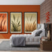 Tapetti jäljitelmämaalaus | Neljä kasvien tyyliteltyä kuvitusta lämpimissä sävyissä