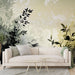 Tämä tapettiominaisuus esittelee elegantin kuvion kasvien silueteista pehmeällä, gradienttitaustalla, joka vaihtelee vaaleanvihreästä beigeen. Orgaaniset muodot tuovat ripauksen mysteeriä ja tyylikkyyttä luoden samalla rauhallisen ja rauhoittavan ilmapiirin tilaasi.