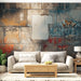 Tämä ainutlaatuinen tapettimurali esittelee kaupunkimuralin, jossa on korostettu tiiliseinä värikkäillä graffiteilla ja maaliroiskeilla. Sinisen, oranssin ja mustan sävyt tuovat dynaamisen kosketuksen sisustukseesi, herättäen teollisen ja nykyaikaisen tyylin.