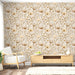 Tämä tapetti sisältää kauniin kuvion herkistä kukista beigeissä ja kultaisissa sävyissä, huolellisesti piirrettynä taiteellisen ja lämpimän vaikutuksen luomiseksi. Pehmeä tausta tarjoaa hienovaraisen kontrastin, joka korostaa jokaista kukkaa ja oksaa, luoden kutsuvan ja rauhoittavan ilmapiirin.