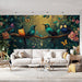 Tämä kiehtova tapetti esittää ryhmän kirkkaanvärisiä lintuja oksalla, ympäröitynä perhosilla ja rehevällä kukkaloistolla. Taustalla on lumoava metsä, jota valaisevat kultaiset hohteet. Ihanteellinen valinta luomaan taianomaista tunnelmaa ja tuomaan luonnon hengähdyksen mihin tahansa huoneeseen.
