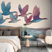 Tämä lumoava Tapetti esittelee värikkäitä ankkoja täydessä lennossa, luoden keveyden ja vapauden tunteen. Sinisen, vaaleanpunaisen ja violetin harmoninen sekoitus herättää rauhallisen ja runollisen ilmapiirin. Neutraali tausta antaa lintujen erottua samalla lisäten hienovaraisen väriläiskän tilaasi.