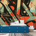 Tämä graffiti-tapetti huokuu elinvoimaista energiaa rohkeilla viivoillaan ja kirkkaiden värien roiskeilla. Geometriset muodot ja eloisat värit kuten punainen, musta ja vaaleansininen kietoutuvat yhteen luoden lumoavan visuaalisen vaikutelman, täydellisen modernin tilan elävöittämiseen.